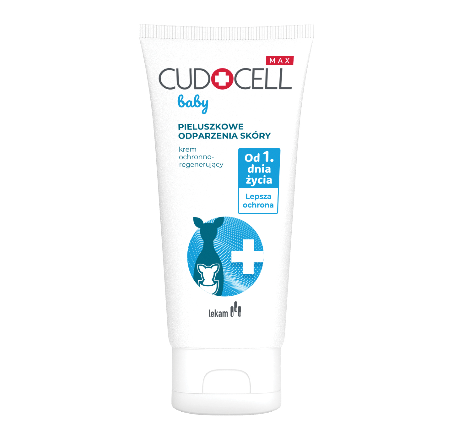 Cudocell Max Baby to krem ochronno-regenerujący do pielęgnacji skóry ze skłonnością do pieluszkowego odparzenia od 1. dnia życia. Zawiera 9 składników aktywnych: AD-RESYL®, alantoina, D-pantenol, witamina E, gliceryna, lanolina, olej canola, tlenek cynku oraz Dibushield PRO-HEAL - DBC, dzięki czemu działa nawilżająco i regenerująco na odparzoną skórę. Biopolimer DIBUSHIELD PRO-HEAL - DBC to innowacyjna przebadana dermatologicznie substancja, która tworzy na skórze trójwymiarową tarczę ochronną i zabezpiecza wrażliwą skórę dziecka. Dodatkowo wspiera optymalne nawilżenie skóry przez obniżenie transepidermalnej utraty wody.